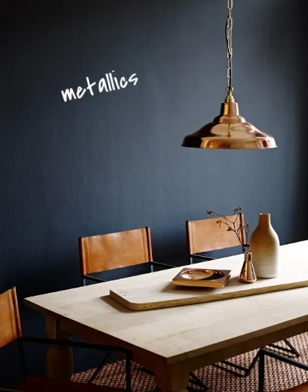 3. METALLICS: Metallic colours look amazing when paired with navy blue. They add glamour and sophistication to any room.